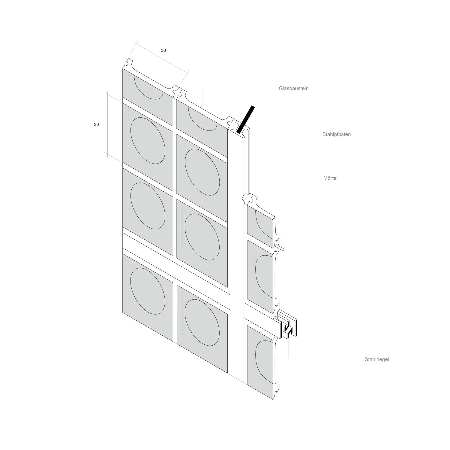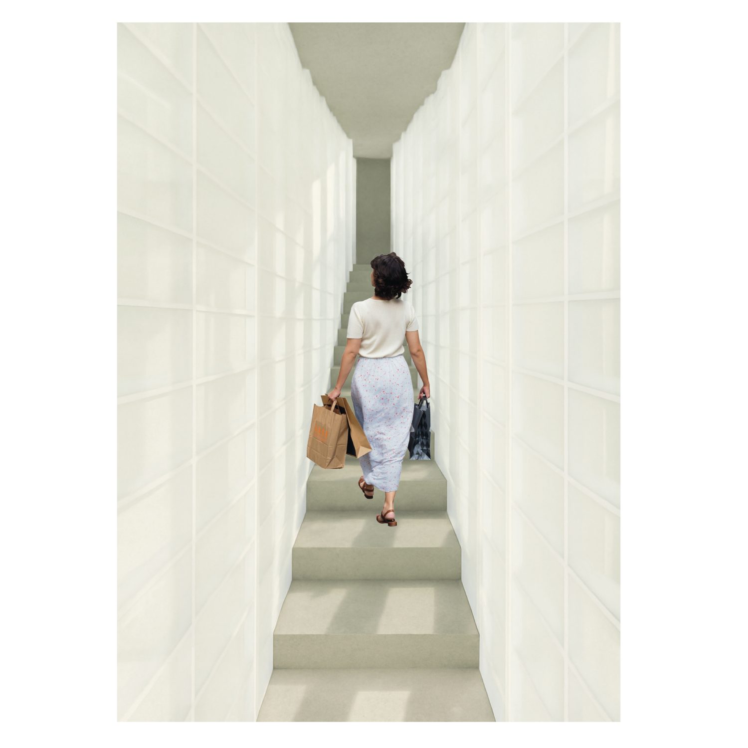 Zentrales Element ist die umlaufende Glasbausteinfassade des Treppenhauses. Sie lässt Tageslicht tief ins Innere und strahlt abends als transluzente Hülle nach außen – Lichtquelle und gestalterisches Motiv zugleich. Im Erdgeschoss befindet sich ein Imkerladen mit direkter Anbindung an den Garten, wo Bienenstöcke und Sitzgelegenheiten einen Ort des Aufenthalts schaffen und die Verbindung von Produktion, Verkauf und Natur stärken. Die äußere Erscheinung ist bewusst zurückhaltend und durch eine klare Materialität geprägt. Polierter Sichtbeton und bodentiefe Fenster öffnen Panoramablicke nach Norden und Süden. Die Balkone sind als hängende Stahlkonstruktion ausgebildet; ihr Polyester-Sonnenschutz verleiht ihnen eine leichte, textile Note.