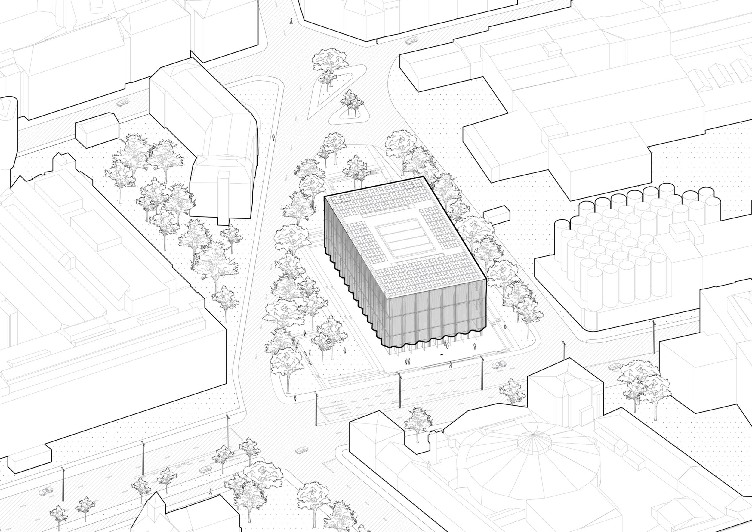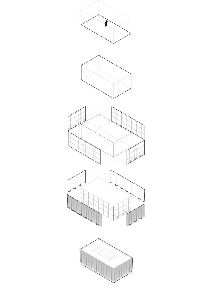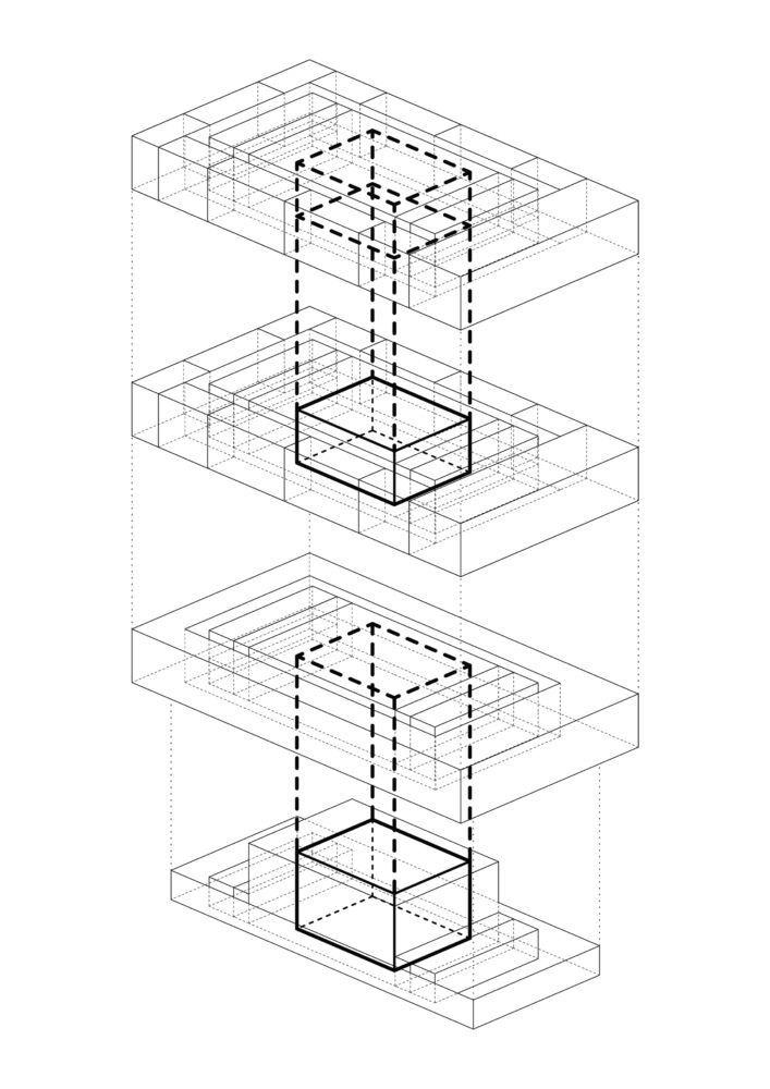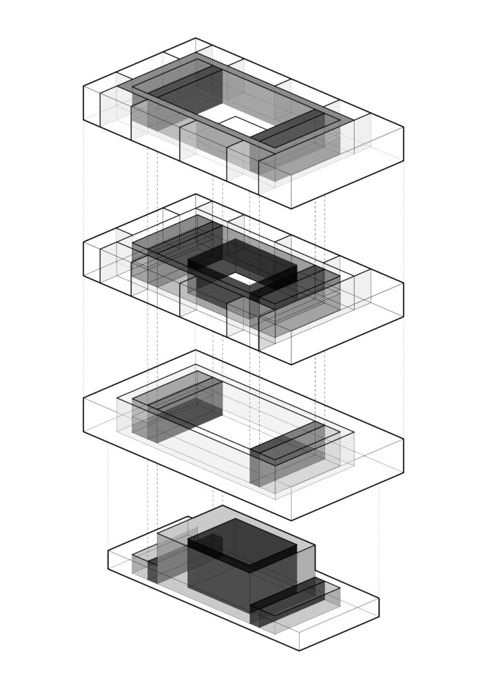 Das Grundelement unseres Entwurfs basiert auf dem Prinzip der Schichtungen, die Raumprägend für den Entwurf sind. Die Schichtungen erzeugen spannende räumliche Zusammenhänge und bieten interessante Atmosphären