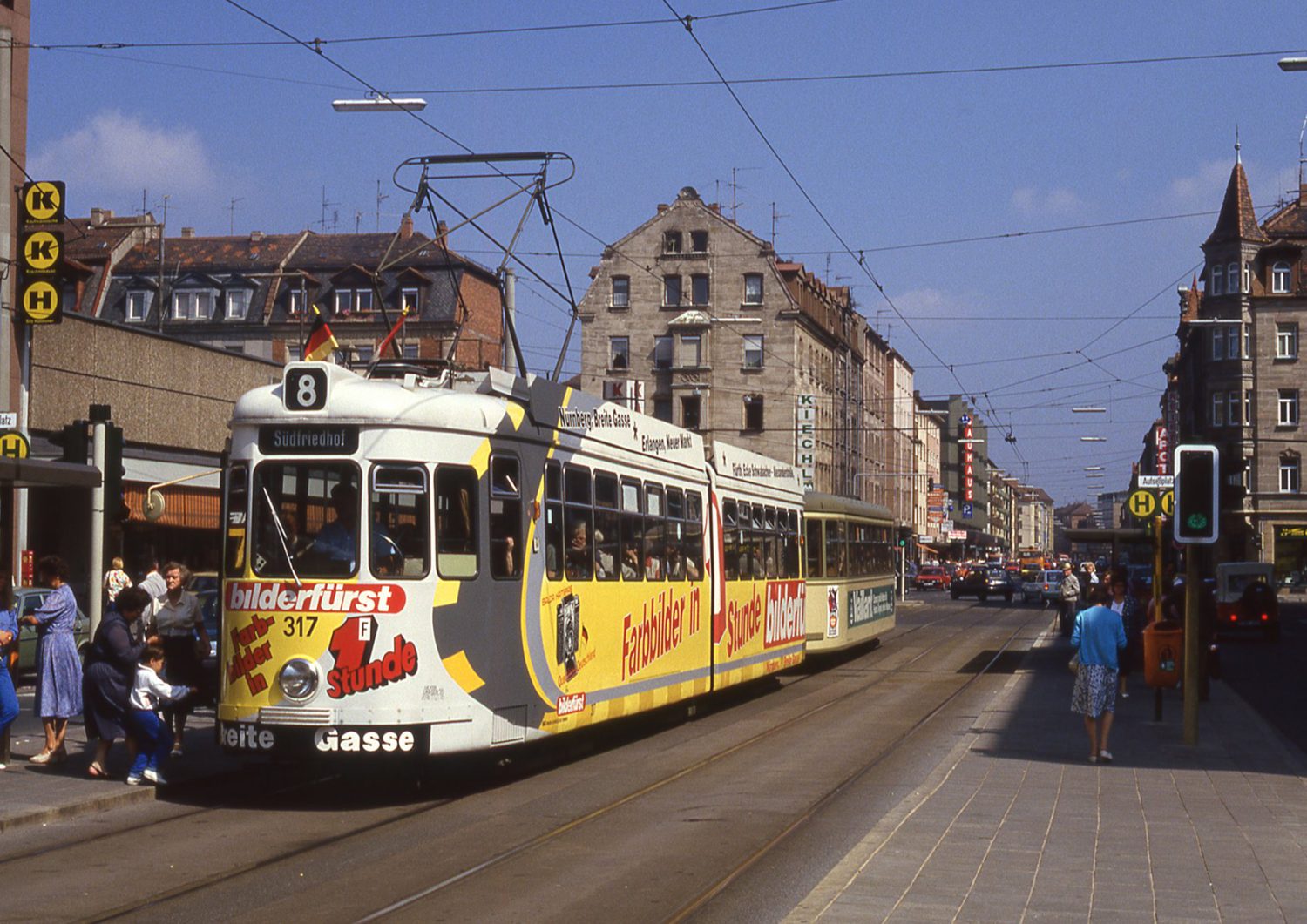 Die Jahre zwischen 1890 und 1990 haben das Nürnberger Stadtbild nachhaltig geprägt. Während die Industrialisierung Fertigungsprozesse in der Baubranche revolutionierte, sorgten Zäsuren wie Weltkriege und politischer Umbruch für Zerstörung mit anschließendem Wiederaufbau. Das 1990 erschienene Buch »Stadtwandel« zeigt eben jene Veränderungen im gebauten Raum: wo einst ein intaktes mittelalterliches Stadtbild vorzufinden war, zeichnete Ende des 20. Jahrhunderts die Stadt eine markante Nachkriegsarchitektur. Dazu sind Fotografien von identischen Orten an verschieden Zeitpunkten gegenübergestellt.