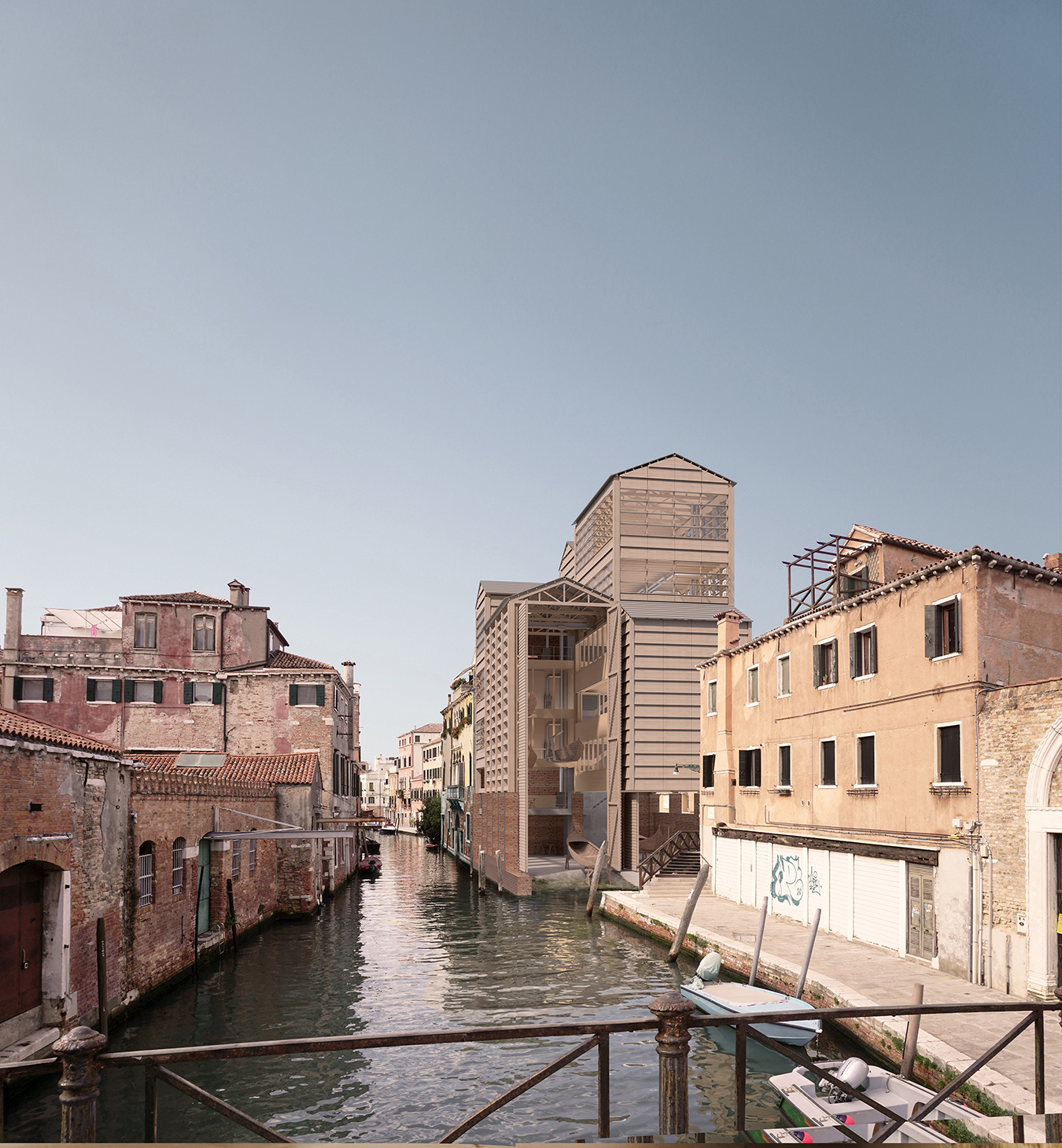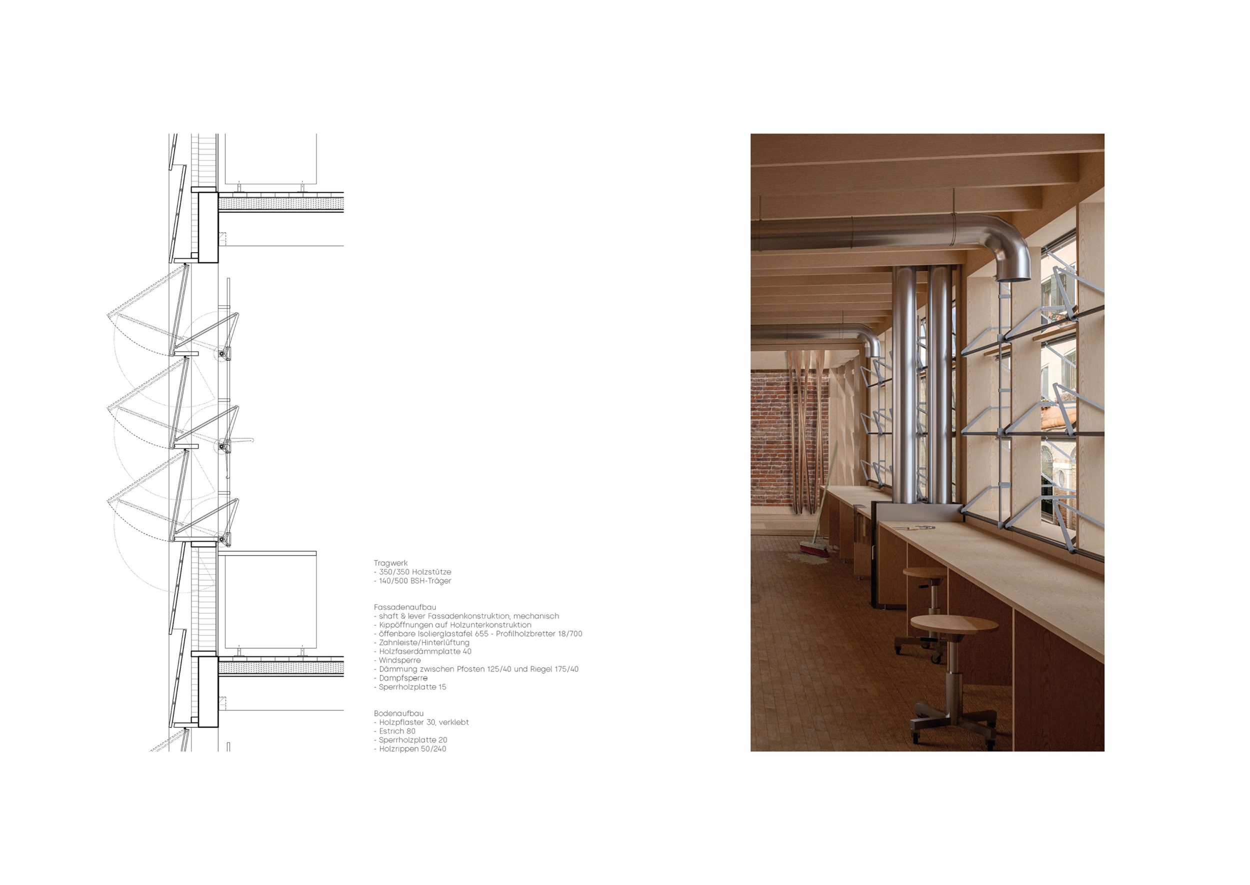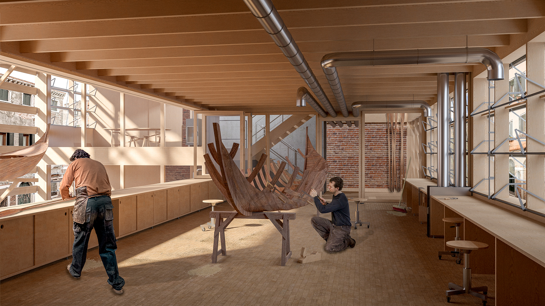 In der Peripherie des Sestiere Cannaregio, die sich den Touristenströmen etwas entzieht, wird an einigen wenigen Orten das traditionelle Handwerk und die Rudertechnik wieder erlernt. Aufbauend auf dem verlassenen Squero dei Muti in Cannaregio soll ein SuperSquero als vertikale Produktionsstätte und Innovationszentrum auf geringer Grundfläche entstehen. Das Entwurfskonzept gründet auf der architekturtypologischen Untersuchung der venezianischen Squero. Dadurch lässt sich ein Regelwerk für Funktion, Programm und Konstruktion ableiten. Auf Mauerwerkspfeilern aufgeständert sollen in dem Holzbau neben Bootswerkstätten auch Werkswohnungen für die Squerarioli entstehen. Die letzten Geschosse dienen als Innovationsraum, hier sollen Produktionsmethoden und Materialforschungen untersucht werden.