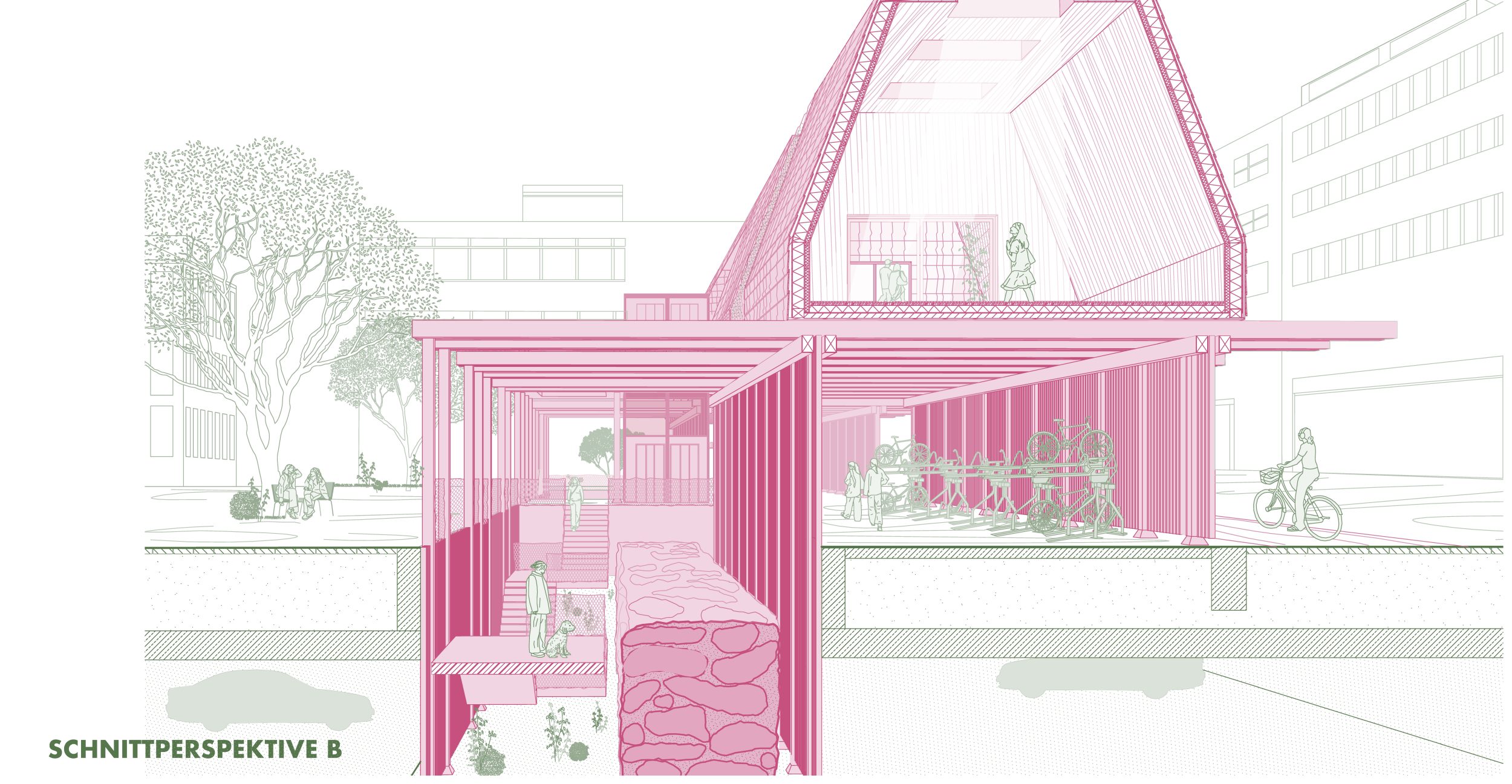 Ein »bewegtes Nürnberg«, in der die Grenzen zwischen urbanen Garten, Mobilität und Sport fließend sind. Kernaufgabe für die Stadt- und Verkehrsplanung, für die zukünftige Gartenschau ist deshalb weniger der Ausbau und die Optimierung des bestehen-den Systems, sondern vielmehr eine Transformation der öffentlichen Stadt- und Verkehrsräume. Ziel ist die Realisierung von lebendigen, »humanen« Straßen und Plätzen, die sich wieder neu auf den »Maßstab Mensch« beziehen, gemeinschaftlich von allen Verkehrsteilnehmern genutzt werden, aber insbesondere adäquaten Raum für den Menschen bieten.